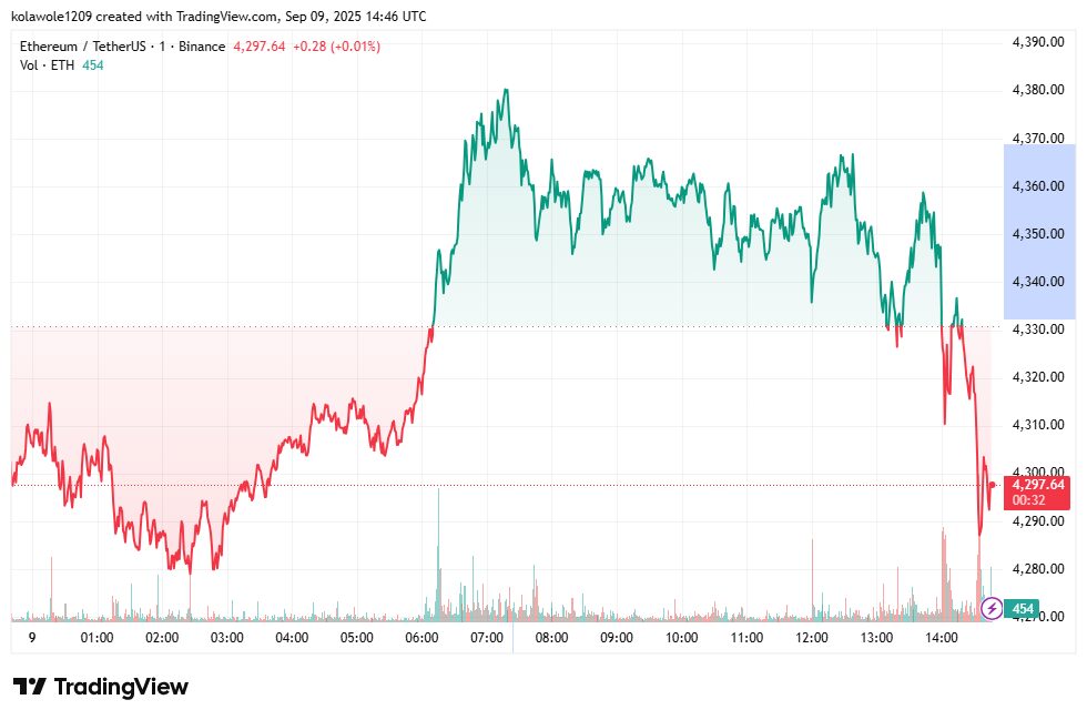 If Ethereum holds above $4,300 and breaks the $4,500 resistance, momentum could carry it back to $5,000—and a clean breakout there may set ETH on course for $5,500 in the mid-term.
