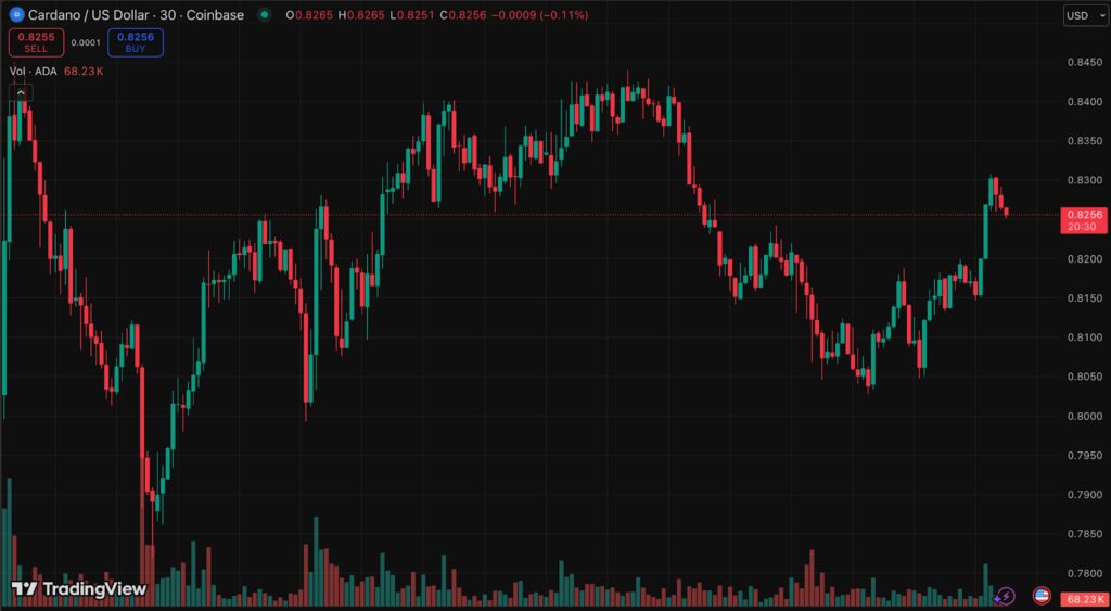 Now trading around $0.82, Cardano has found support between $0.78 and $0.80. Resistance sits at $0.84–$0.85, with $0.92 as the next level to watch. A clean break there could push Cardano above $1.00 and toward $1.15.