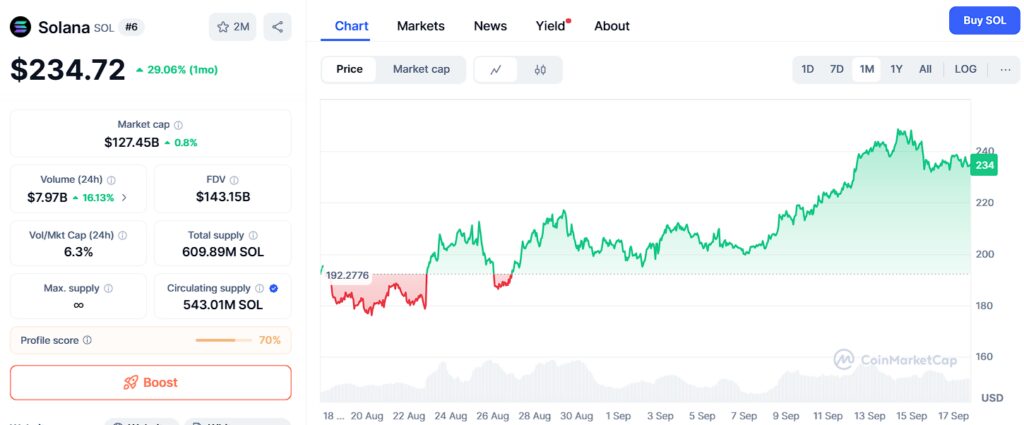 Solana, priced near $230, has rebuilt its momentum after network improvements and a resurgence in developer adoption. Analysts see SOL climbing toward $250, which would deliver moderate returns of around 8–10%.