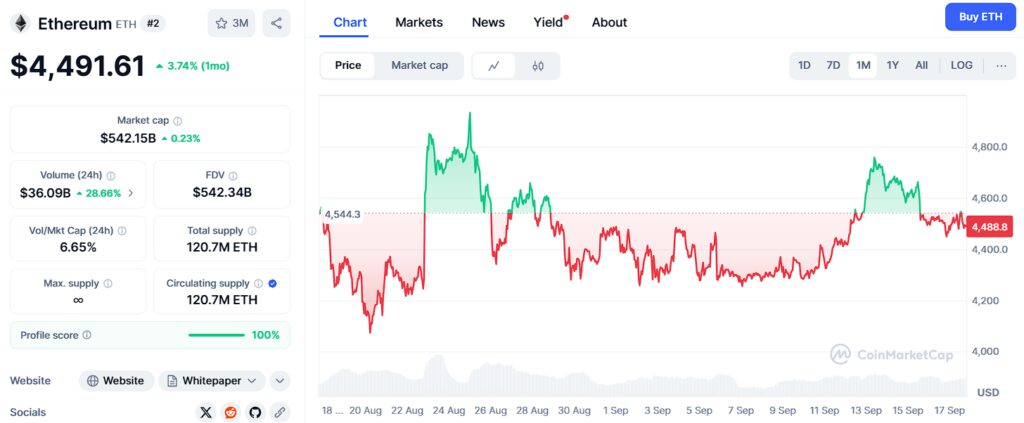 Ethereum remains the second-largest cryptocurrency and continues to dominate DeFi, NFTs, and Web3 infrastructure. With ETH trading at $4,500, analysts expect it to push toward $5,000 in the next cycle. While strong, this growth represents just over a 10% gain—attractive for stability, but far from life-changing.