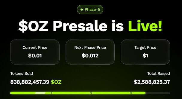 Momentum around the project is surging, with Ozak AI raising more than $2.5 million and selling over 830 million tokens in its ongoing OZ presale. Priced at just $0.01 in stage 5, the token is being compared to early-stage Ethereum and Solana, when early investors secured life-changing returns before their meteoric rises. This presale structure positions Ozak AI as one of the most talked-about opportunities for 2025.
