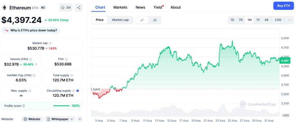 Ethereum, presently trading at $4,400, remains one of the most influential blockchains in the marketplace due to its dominance in DeFi, NFTs, and smart contracts. Analysts accept as true that ETH has the momentum to climb in the direction of $8,000 in 2025, pushed by way of growing institutional adoption and Layer-2 scaling answers that enhance pace and decrease gasoline fees. However, ETH faces vital resistance tiers at $4,800, $5,500, and $6,200, which it should ruin to preserve upward momentum.