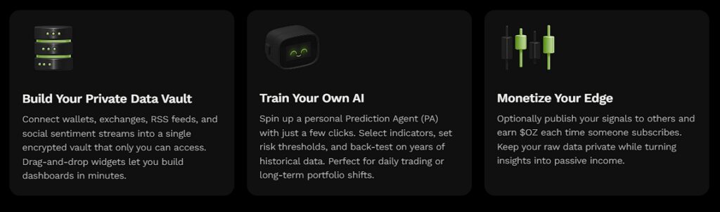Ozak AI is a blockchain-based crypto project that provides an innovative platform that focuses on predictive AI and advanced data analytics for financial markets. Through machine learning algorithms and decentralized community technologies, Ozak AI enables real-time, accurate, and actionable insights to help crypto lovers and corporations make the perfect choices.